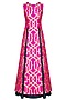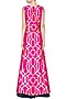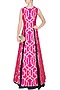 This set features a fuschia pink sleeveless kurta in handwoven brocade thick line printed motifs all over the front and back. It has high slit detailing on the sides and zipper closure detailing on centre back. It is paired with blue raw silk flared lehenga skirt.
