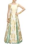 Featuring a mint green pleated lehenga in raw silk.