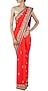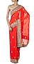 Featuring an orange colour georgette sari with zardozi embroidery all over and purple border.