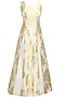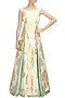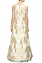 Featuring a white brocade kurta with handwoven gold custom flower pot all over and high slit in front.