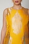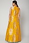 Featuring a yellow kurta in brocade base with high slit. It is paired with a contrasting mint lehenga.