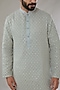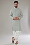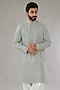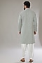 Featuring an ash grey kurta in georgette base with floral jaal thread and sequins machine embroidery. It is paired with contrasting pants. Perfect wear for festive occasions or poojas.