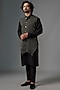 Featuring a black bundi jacket in faux silk base with thread and cutdana hand embroidery. It is paired with a kurta and pants. Perfect wear for a wedding or sangeet ceremony, exuding charm and elegance.