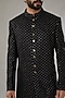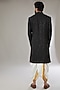 Featuring a black sherwani in faux silk base with motif thread and sequins embroidery. It is paired with contrasting dhoti pants. Perfect wear for sangeet or festive occasions.