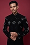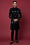 Black Faux Silk Hand Embroidered Sherwani Set
