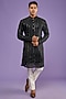 Featuring a black kurta in georgette base with foil, mirror, thread, and sequins embroidery. It is paired with contrasting pants.