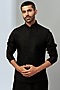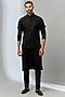Featuring a black bundi jacket in silk base with thread and cutdana embroidery. It is paired with a matching kurta and pants.