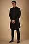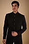 Featuring a black indowestern in silk base with geometric thread and cutdana embroidery. It is paired with a kurta and pants. Perfect wear for festive occasions or pre-wedding ceremonies.