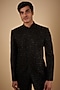 Featuring a black indowestern in silk base with geometric thread and cutdana embroidery. It is paired with pants. Perfect wear for festive occasions or pre-wedding ceremonies.