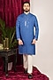 Featuring a blue kurta in faux silk base with mirror and floral hand embroidery. It is paired with pants. Perfect wear for festive occasions.