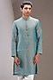 Featuring a blue dual-shaded kurta in linen base. It is paired with contrasting pants. Perfect wear for a pooja or festive ceremony.