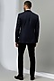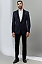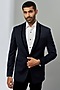 Featuring a blue tuxedo jacket in terry rayon base with shawl lapel and swarovski embroidery. It is paired with a contrasting white shirt and pants.