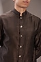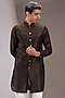 Featuring a brown achkan style kurta in faux silk base. It is paired with contrasting pants. Perfect wear for a pooja or festive occasion.