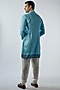 Featuring a celestial blue kurta in silk base with print. It is paired with white pants. Perfect for a festive or engagement ceremony.