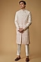 Cream & Pink Faux Silk Hand Embroidered Sherwani Set