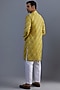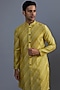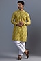 Featuring a granola yellow kurta in silk base with floral print. It is paired with contrasting pyjama pants.