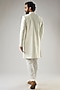 Featuring an ivory sherwani in japanese polyester viscose base with geometric french knot and jaal embroidery. It is paired with a kurta and pants. Perfect wear for an engagement ceremony or wedding.