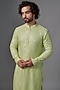 Featuring a lime green kurta in faux silk base with mirror embroidery. It is paired with pants. Perfect wear for a festive occasion or sangeet ceremony, exuding charm and elegance.