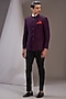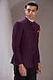 Featuring a midnight purple bandhgala jacket in jacquard base. It is paired with a contrasting shirt and pants. Perfect wear for a reception or engagement ceremony.