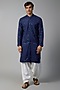 Featuring a navy blue kurta in georgette base with mirror and thread machine embroidery. It is paired with patiala pants. Perfect attire for festive occasions or wedding ceremonies.