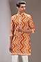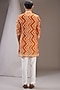 Featuring an orange kurta in faux silk base with bandhani print. It is paired with contrasting pants. Perfect wear for a festive or engagement ceremony.