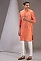 Featuring an orange kurta in faux silk base. It is paired with contrasting pants. Perfect wear for a pooja or festive ceremony.