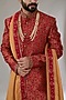 Red & Gold Brocade Embroidered Sherwani Set