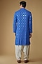 Featuring a royal blue kurta in georgette base with mirror embroidery. It is paired with patiala pants. Perfect wear for a pooja ceremony or a festive occasion.