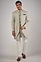 Featuring a sage green layered indowestern jacket in faux silk base with sequins machine embroidery. It is paired with a bundi jacket and white pants. Perfect wear for festive or engagement ceremonies.