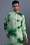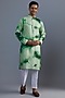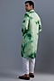 Featuring a sage green kurta in silk base with tie-dye and sequins embroidery. It is paired with contrasting pyjama pants.