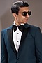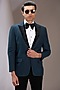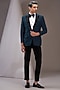 Featuring a teal blue tuxedo in terry rayon base. It is paired with a contrasting pintuck shirt, black pants and a bow tie. Perfect wear for a reception or engagement ceremony.