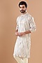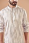 Featuring a white dual-shaded kurta in silk rayon base with impression print. It is paired with matching pants.