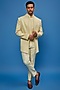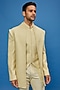 Featuring a yellow indowestern in faux silk base with thread hand embroidery. It is paired with matching bundi jacket and pants.