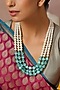 Featuring a gold finish long necklace studded with beads and pearls, set in brass.