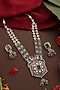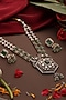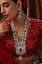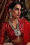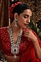 Featuring a gold finish handcrafted long necklace studded with emerald green kundan polki, set in brass. It is paired with a matching pair of earrings. Accentuate it with a richly embroidered saree or a regal lehenga set for a stylish ensemble, ideal for wedding ceremonies, engagement functions or grand festive celebrations.