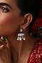 Featuring a pair of gold finish jhumka earrings studded with emerald kundan polki, set in brass. Add a touch of sparkle to your ensemble, perfect for festive occasions or wedding ceremony.