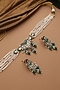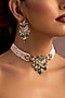 Featuring a gold finish choker necklace studded with green kundan polki, set in brass. It is paired with a matching pair of earrings. Ideal for festive occasions, weddings, or elevating your elegant evening look.