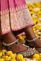 Featuring a pair of gold finish handcrafted anklets studded with green kundan polki, set in brass. Ideal for festive occasions or wedding ceremonies.