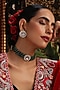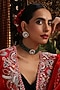 Featuring a gold finish handcrafted choker necklace studded with green kundan polki, set in brass. It is paired with a matching pair of earrings. Accentuate it with a richly embroidered saree or a regal lehenga set for a stylish ensemble, ideal for wedding ceremonies, engagement functions or grand festive celebrations.