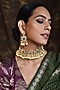 Featuring a gold finish handcrafted choker necklace studded with kundan polki and pearls, set in mixed metal. It is paired with a pair of matching earrings.