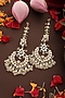 Featuring a pair of gold finish chandbali earrings studded with kundan polki, set in brass. Perfect choice for festive celebrations or other Indian festivities.