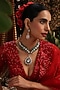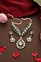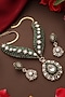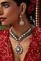 Featuring a gold finish necklace studded with kundan polki and emerald stones, set in brass. It is paired with a matching pair of earrings. Add a touch of sparkle to your ensemble, perfect for festive occasions or wedding ceremony.