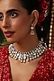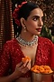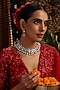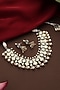 Featuring a gold finish necklace studded with kundan polki and green stones, set in brass. It is paired with a matching pair of earrings. Add a touch of sparkle to your ensemble, perfect for wedding or engagement ceremony.