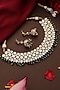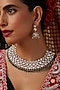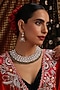 Featuring a gold finish necklace studded with kundan polki and green stones, set in brass. It is paired with a matching pair of earrings. Add a touch of sparkle to your ensemble, perfect for wedding or engagement ceremony.