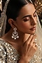 Featuring a pair of gold finish handcrafted chandbali earrings studded with kundan polki, set in brass. Add a touch of sparkle to your ensemble, perfect for a wedding or engagement ceremony.