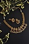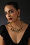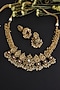 Featuring a gold finish necklace studded with kundan polki including green and red jadau, set in 9.25 sterling silver. It is paired with a matching pair of earrings. This necklace set is ideal to wear for a festive or a wedding occasion.