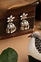 Featuring a pair of gold finish jhumka earrings studded with kundan polki, set in brass. Ideal for festive occasions, weddings, or elevating your elegant evening look.