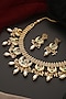 Featuring a gold finish necklace studded with kundan polki, set in brass. It is paired with a matching pair of earrings. Perfect wear for wedding celebrations or grand events.
