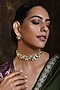 Featuring a gold finish handcrafted choker necklace studded with kundan polki, set in mixed metal. It is paired with a matching pair of earrings.