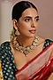 Featuring a gold finish handcrafted necklace studded with kundan polki, set in brass. It is paired with a matching pair of earrings.